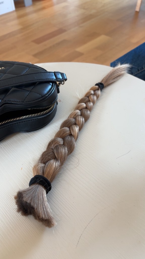 Min son klippte av sig håret och donerade det.